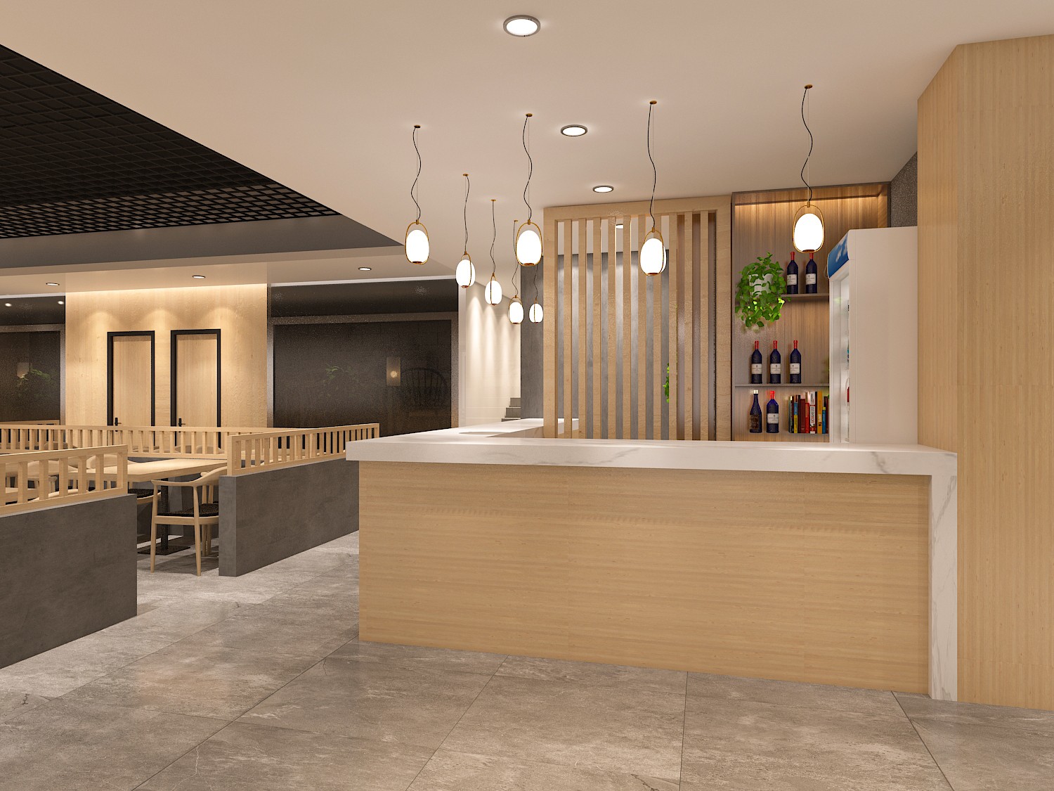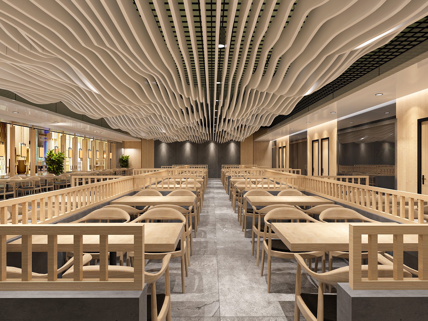 严格来说,这是一次“局部改造”的构建过程,我们需要从原有结构开始,在一个特定的区域温柔地注入一些新生的力量。从色彩、材质、光等物质要素,与人感知要素的联系,共同营造温馨舒适大气的就餐空间氛围。