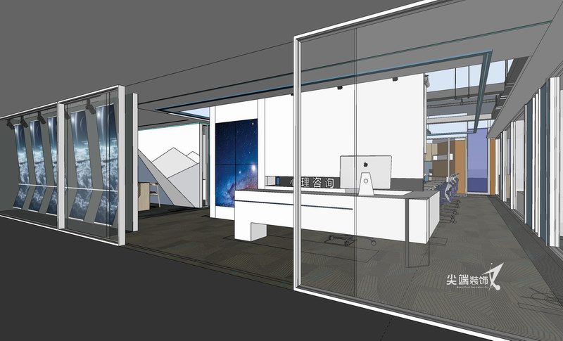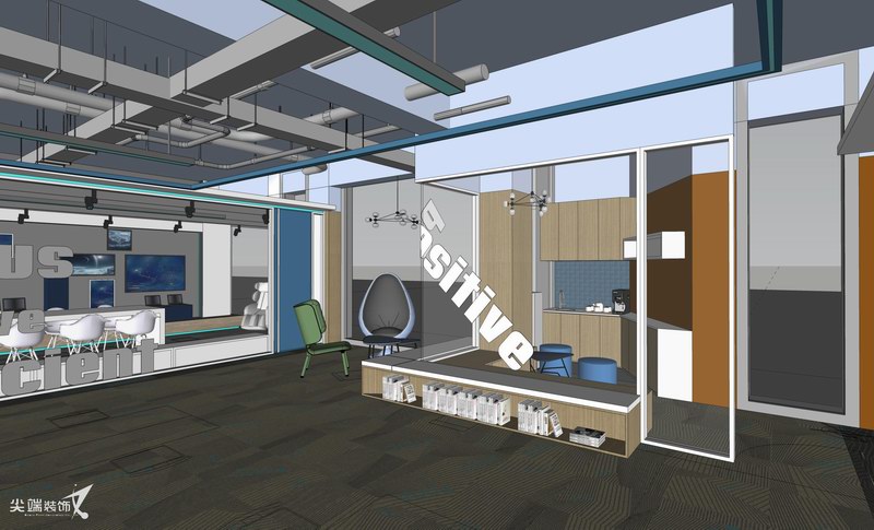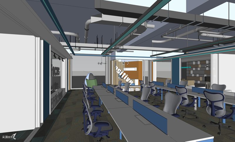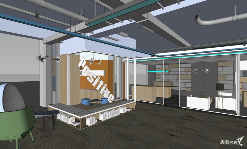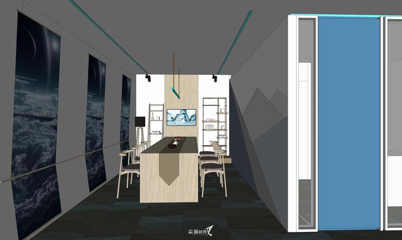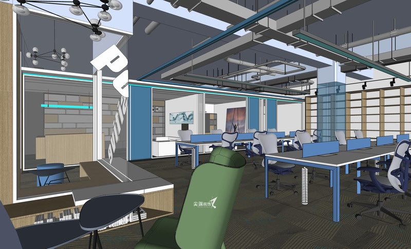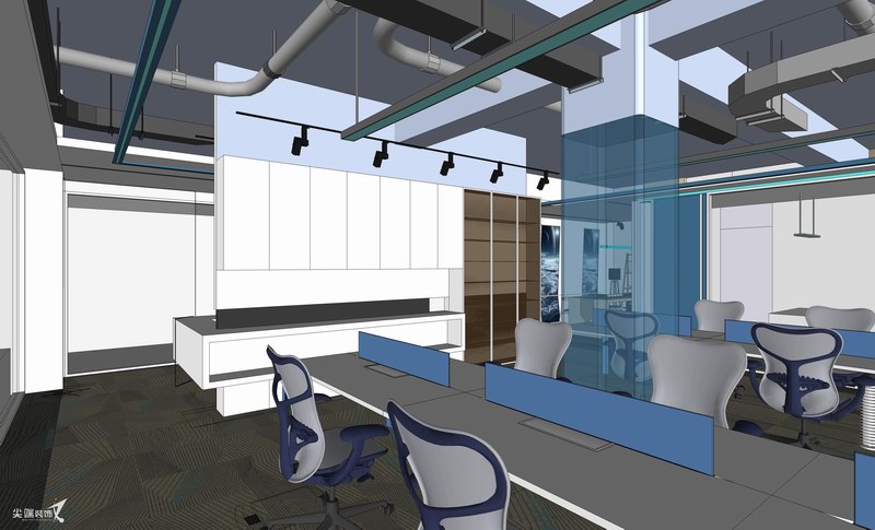 在物质文明极度繁荣的当下,宁静、空灵也许是人们心灵的向往,打造极简的工作空间,秉承“形式追随功能”的设计理念,各个功能区空间分割、咬合、重组,以白色与灰色、木色为主基调,绿色和蓝色的穿插则赋予空间线条感,体块的组合、线条精练的比例划分,减法的设计手法使空间秩序与空间逻辑更加严谨,惬意雅致的气韵格调油然而生,整体开放的设计最大限度功能交互共享,体现空间的律动和生命力。