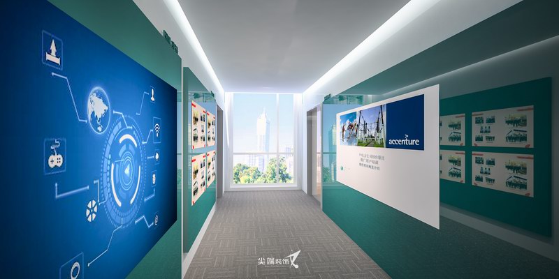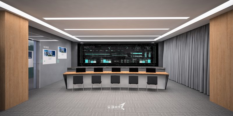 内蒙电科院是一家以诚信、实力和质量获得业界的高度认可,坚持以客户为核心,“质量到位、服务一流”的经营理念的高新企业,本项目为其展示空间。该展厅设计风格采用了绿色和木纹色为主的清新风格的色彩搭配形式,贴合倡导绿色能源的环保理念,同时具备简约、庄重的环境氛围。明暗搭配、色彩协调。材质上采用木饰面及烤漆玻璃为主,便于清洁,简约明快,同时暖灰色的地毯更是降低了室内的噪音的同时营造出了一种舒适的空间氛围。